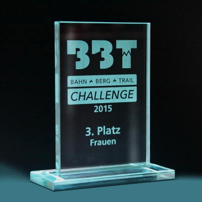 Diese lasergravierten Glaspokale für die BBT-Challenge werden